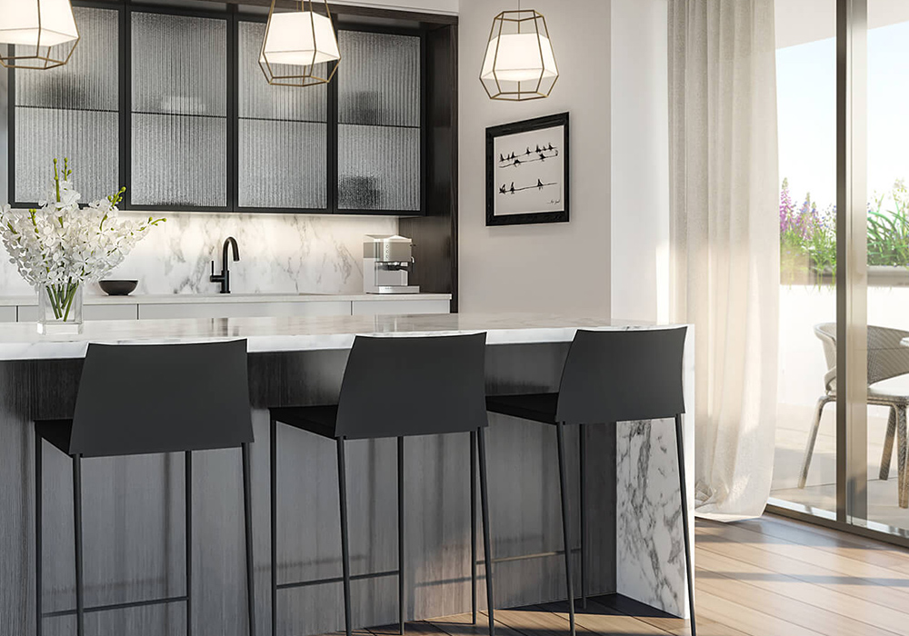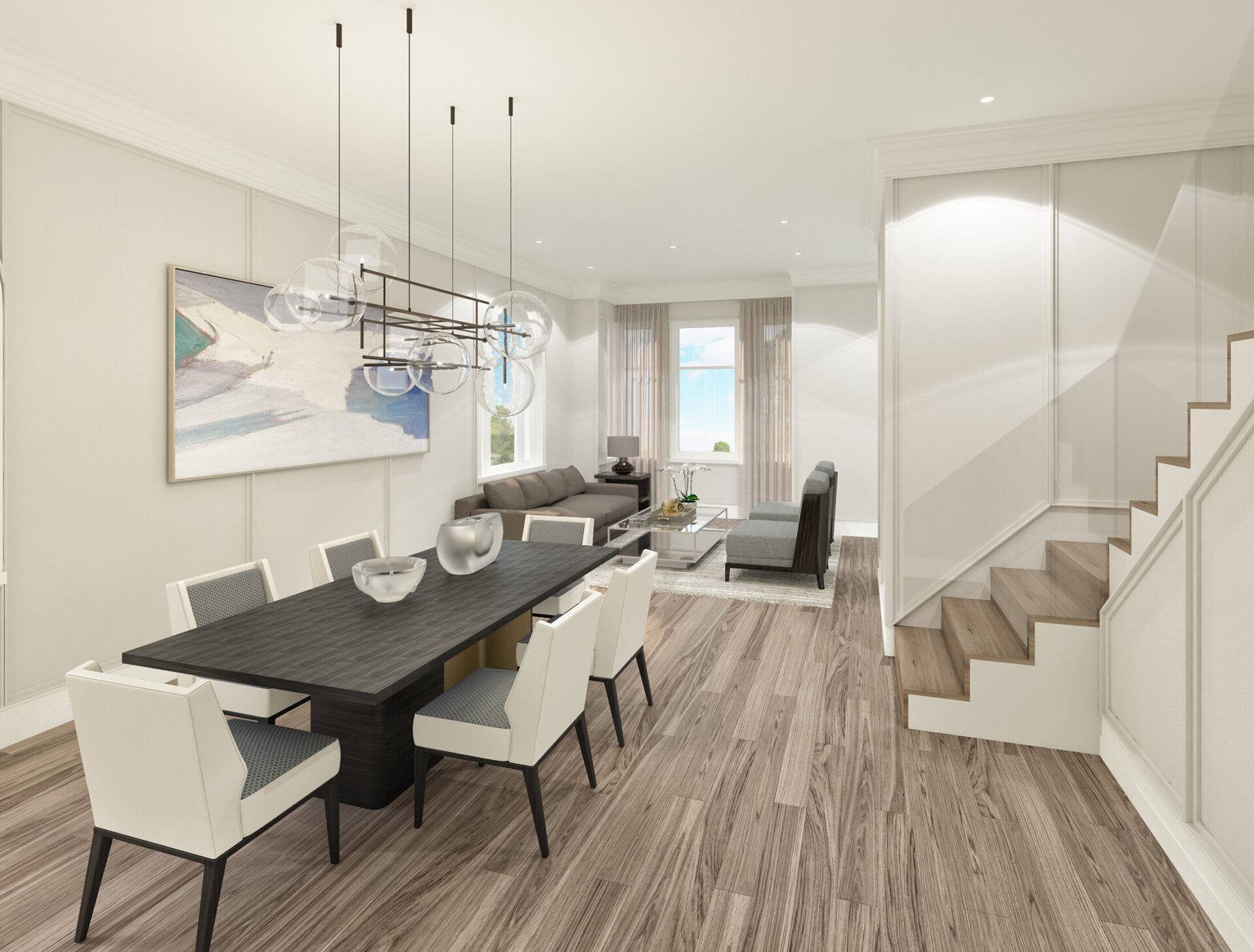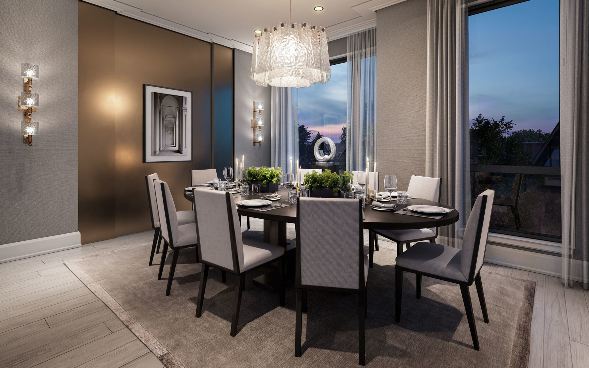 Charbonnel is a play of opposites and how they attract. The visual elegance of a traditional exterior versus the lighthearted so-modern sophistication of space. It’s really an extraordinary meld of contemporary and traditional style.The architecture by Richard Wengle Architects Inc. is big, bold and grand. The interior spaces are comfortable, thoughtful and filled with light. The designers have spared no detail in making these homes the very definition of urban luxury. A home at Charbonnel offers the unlimited opportunity to make it yours. With bespoke customization by Gluckstein Homes.