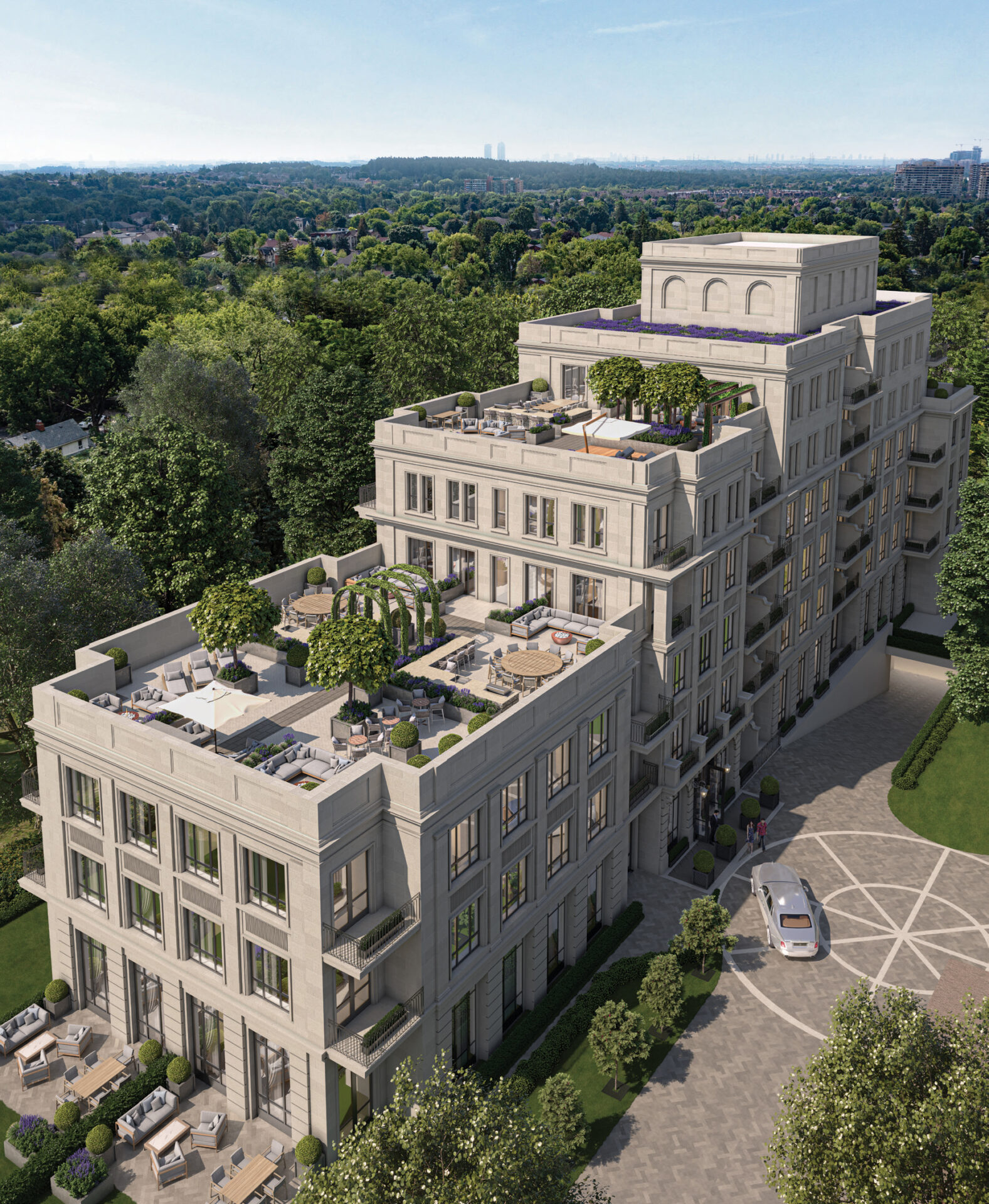 This luxury condominium is a collection of 36 connected private residences composing an exclusive vertical neighbourhood, where each spacious suite has its own distinctive personality, style and design. Each suite is uniquely designed with an eye to maximize the view from every angle and enhanced with floor to ceiling glass. Created with glamorous private outdoor green spaces, a connection to the natural surroundings is easy. The entire building was conceived to take advantage of elegant features, with luxurious high-end appliances in gourmet kitchens, spa-like bathrooms and inviting amenity spaces. Located at Avenue Road and Bedford Park in the prestigious Lawrence Park neighbourhood, there is sophisticated shopping at the doorstep and greenery everywhere.